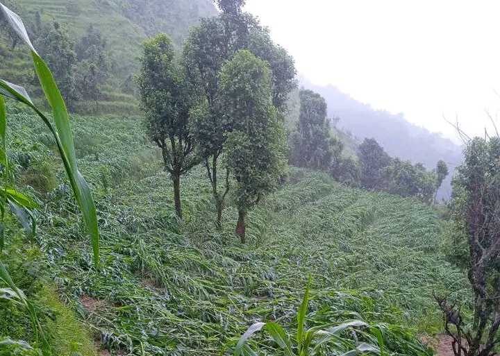 लगातार बर्षाका कारण बुधबार राती हावाहुरी चलेपछि बारीमा लगाएको सबै मकैबाली ढलेर नष्ट भएको स्थानीय सरस्वती चन्दले जानकारी दिईन् ।