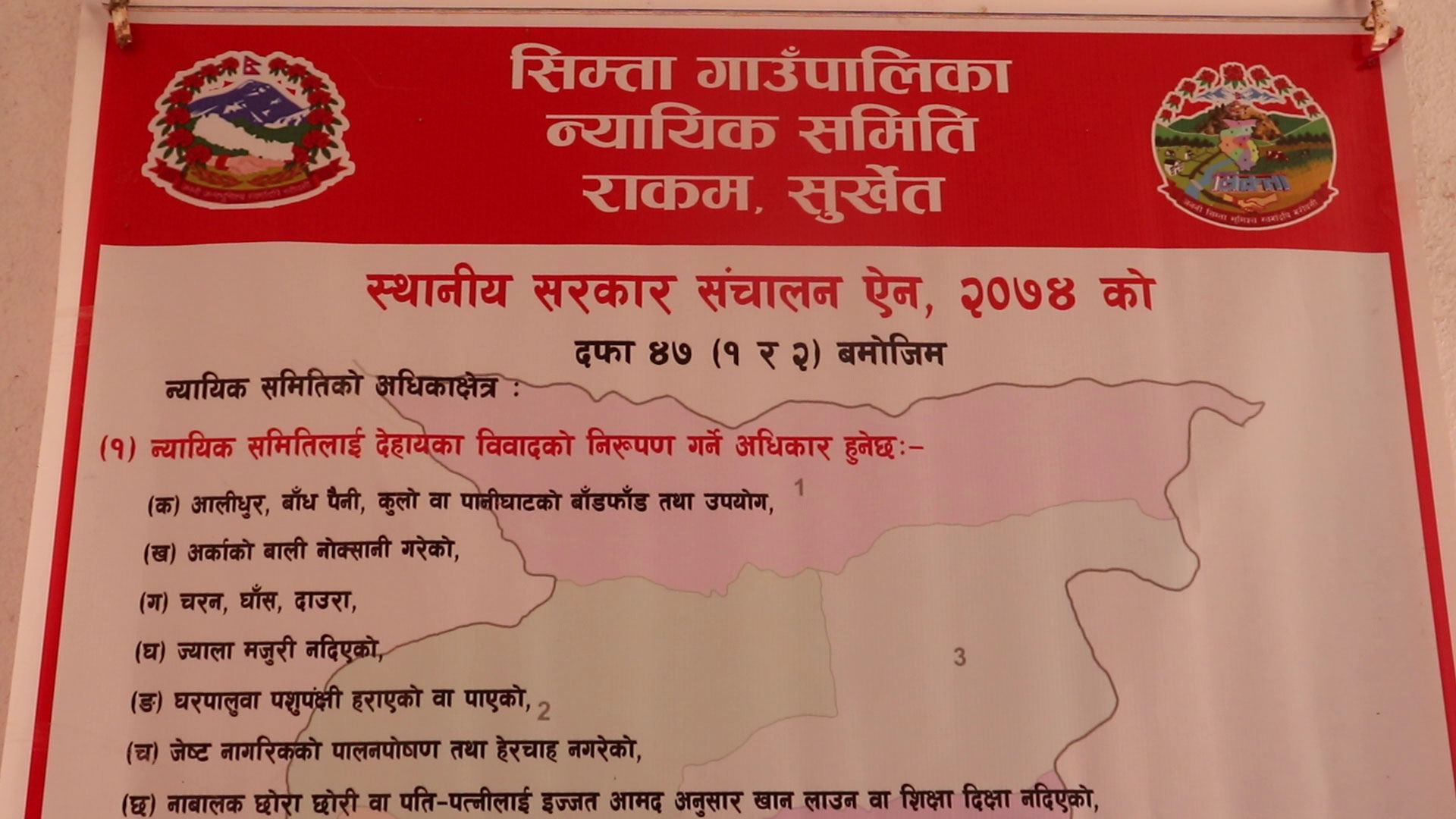 माथि उल्लेखित घटना सिम्ता गाउँपालिकाका हुन् । गाउँ घरमा हुने सामान्य कुटपिट, गाली बेइज्जती, साँध सँधियार, झगडा, लेनदन जस्ता विवादहरुको निरुपण संघीयतापछि स्थानीय तहको न्यायिक समितिले गर्दै आएको छ ।