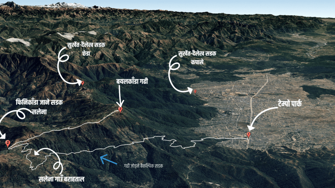 सुर्खेत-दैलेख सडक भएर कपासेबाट गाेठीकाँडा पुग्ने गरिएपनि गढी जाने बैकल्पिक सडक टेम्पाेपार्कहुँदै बराहताल गाउँपालिका-१० सलेना गाउँ भएर निर्माण गरिएकाे छ ।