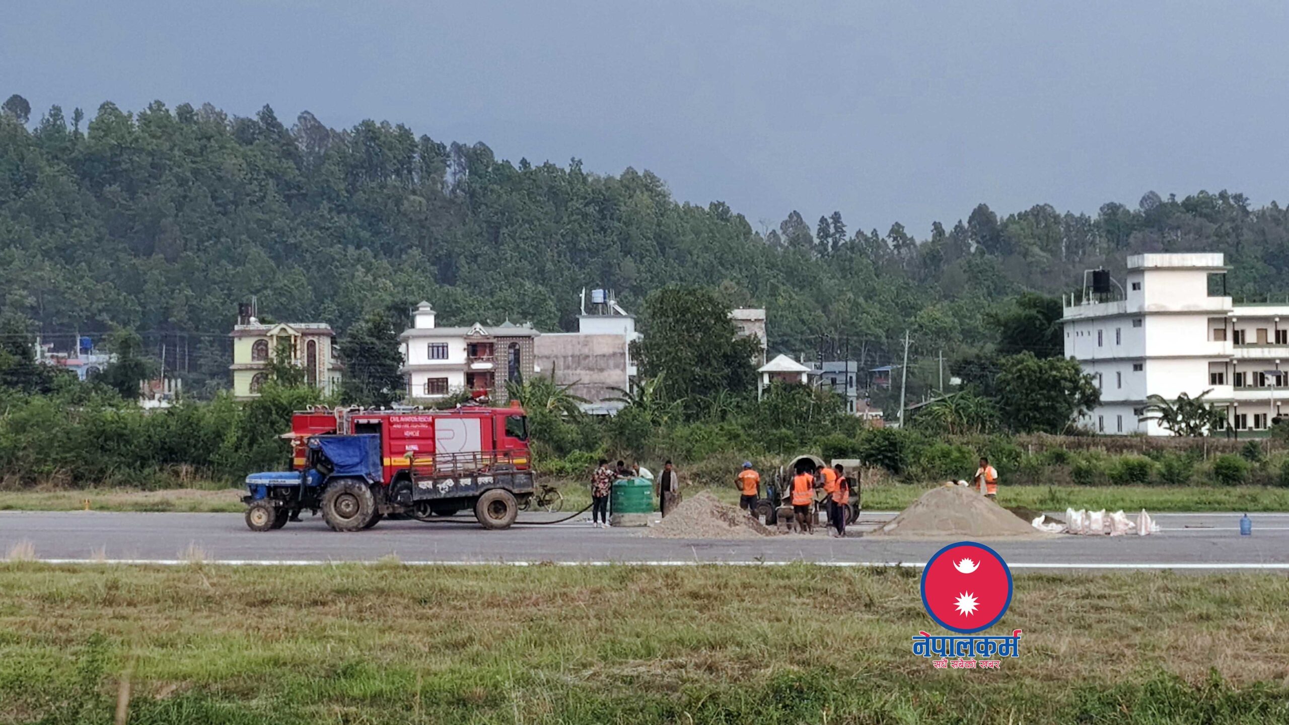‘शुरुमा भ्वाङ (खाल्डो) परेको ठाउँको मर्मत सकेका थियौं । १० मिटरको दुरीमा पुनः अर्को ठाउँमा जमुनीमुनीबाट पानी निस्कीयो,’ प्रमुख काफ्लेले भने, ‘बिहीबार र शुक्रबारसम्म काम सक्नेगरी विमानस्थल बन्द गरिएको छ ।’ खाल्डो परेको रनवे क्षेत्र यसअघि बस्ती उठाएर विस्तार गरिएको क्षेत्र हो ।