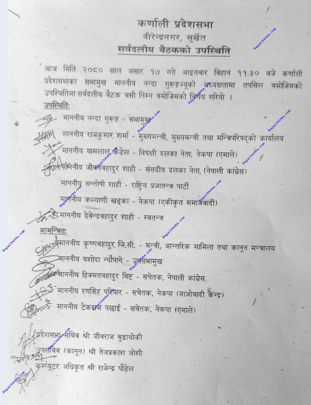 यस्तै, १२ गते बसेको कर्णाली प्रदेश सभाको बैठकमा बोल्दै प्रतिपक्ष दल एमालेका नेता कँडेलले बजेट प्रदेश बनाउनेतर्फ नभई बजेट बाँड्नेतर्फ केन्द्रीत भएको टिप्पणी गरे। उनले भने, बनाउने कुरामा जोड् दियौं। तर, सरकार बजेट बाड्ने कुरामा अग्रसर छ। यदी त्यसो हो। भने कुनै छलफल नगरे पनि हुन्छ। बजेट पास गर्ने तपाईंहरुसँग बहुमत छ। जति बाँडे पनि हुन्छ बाँड्नुहोस्। यो बजेट पुस्तिका हेर्दा विचौलियाबाट आएको प्रष्ट देखिन्छ।’