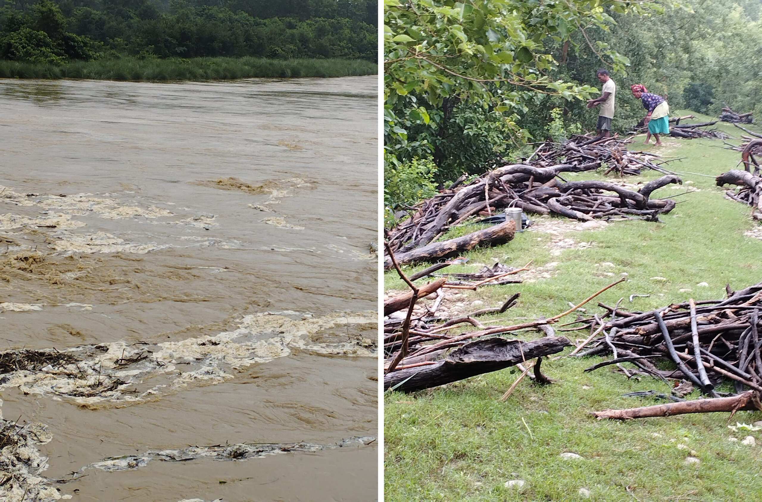 मंगलबार दिउँसाेसम्म नदी नटिय क्षेत्रका नागरिकहरूलाइ उच्च सावधानी अपनाउन अलर्ट गरेकाे छ । तर नागरिकहरू जाेखिम माेलेर नदीमा बगाएर ल्याएका दाउराहरू संकलन गर्न पुगेका छन् ।