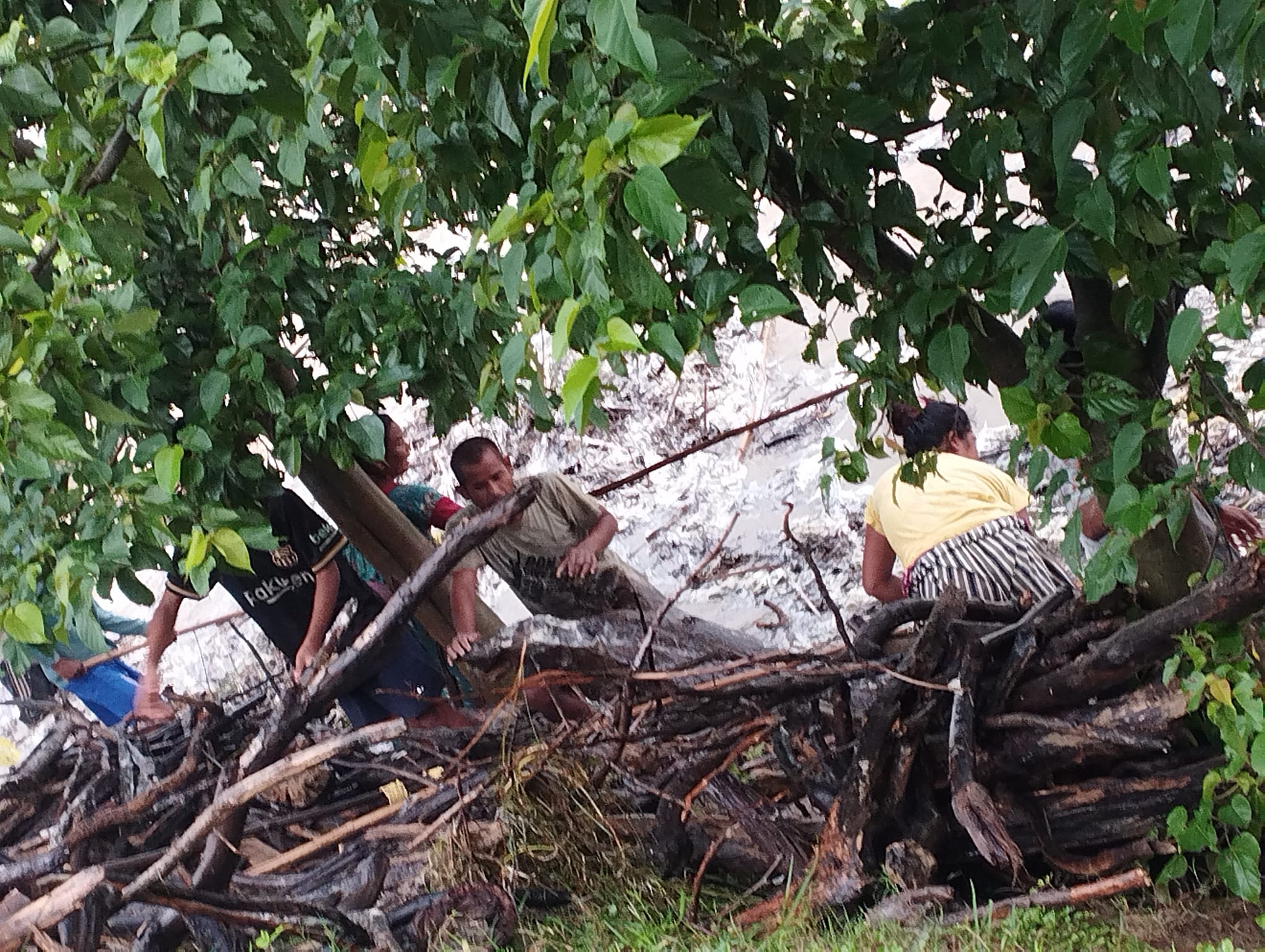 बाढीले बगाएर ल्याएका दाउरा संकलन गरिरहेकाे स्थानीयलाइ ठाकुरबाबा नगरपालिकाले नदी क्षेत्रमा नजान अपिल गरेपनि उनीहरू दाउरा तान्न व्यस्त देखिन्छन ।