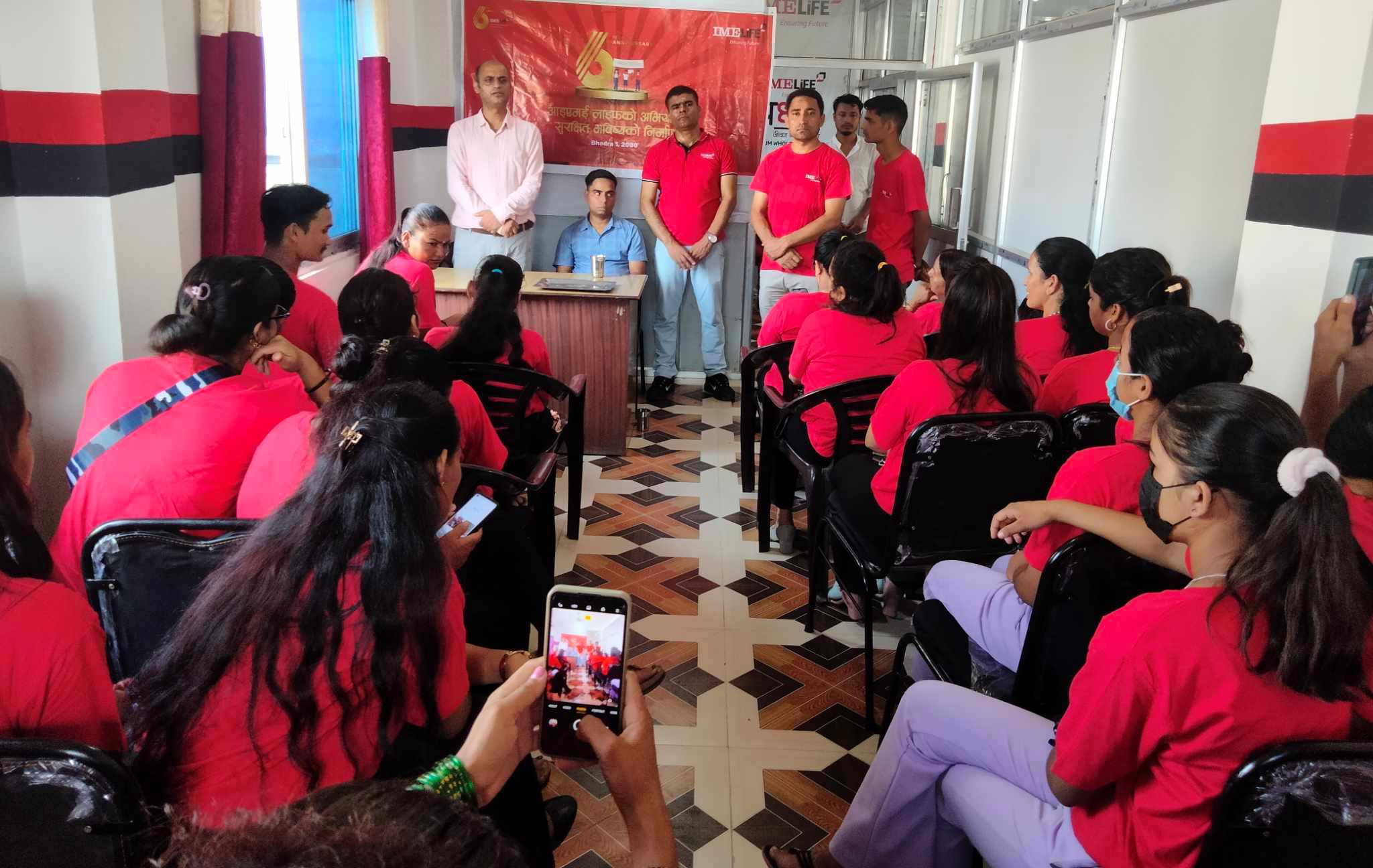 सुर्खेत । आइएमई लाइफ इन्सोरेन्स कर्णाली प्रदेश सुर्खेत कार्यालयको आयोजनामा रक्तदान र बजार ¥याली कार्यक्रम सम्पन्न भएको छ ।