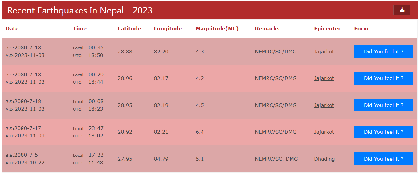 सुर्खेत । जाजरकोटको रामीडाँडा केन्द्रविन्दु भएर शुक्रबार राति ११ः ४७ बजे शक्तिशाली भूकम्प गएपछि लगातार तीन परकम्प गएका छन्।
