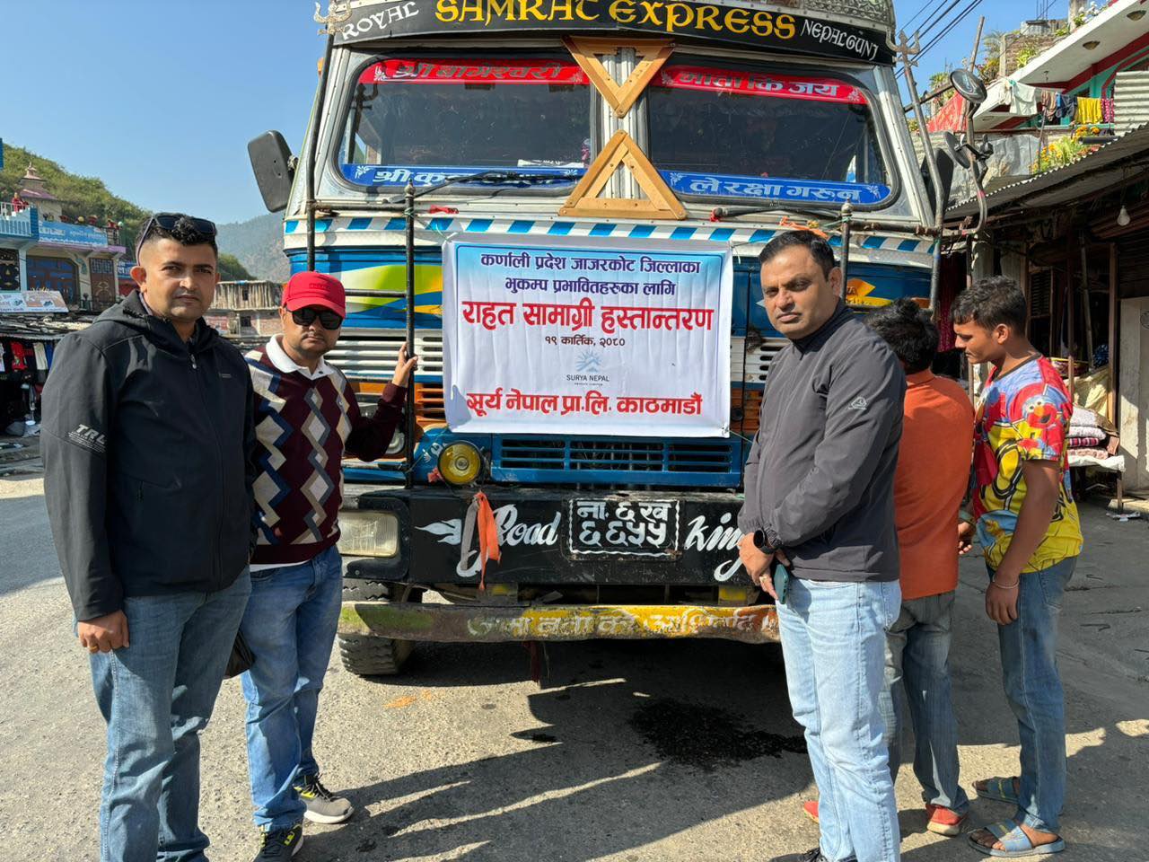 सूर्य नेपालले शुक्रवार जाजरकोटकोे रामीडाँडा केन्द्र विन्दु भएर गएको भुकम्पबाट पीडित बनेका नागरिकका लागि पाँच सय बोरा चामल, ८५ बोरा दाल, पाँच सय थान ब्लाङ्केट र पाँच सय थान त्रिपालसहितको राहत सामाग्री सहयोग गरेको हो।