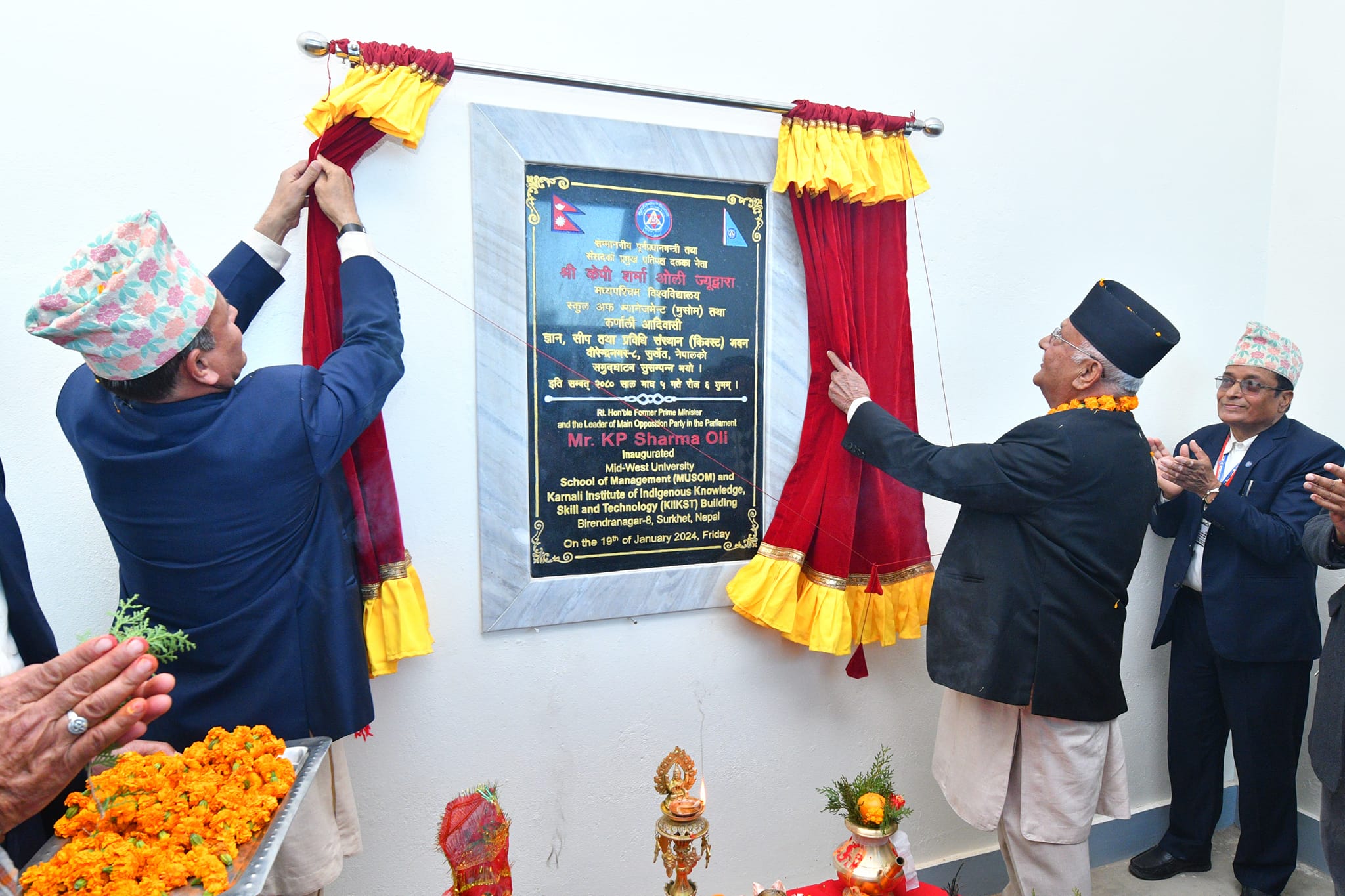 एमाले अध्यक्ष ओलीले मध्यपश्चिम विश्वविद्यालयको स्कुल अफ म्यानेजमेन्ट तथा कर्णाली आदीबासी ज्ञान, सीप तथा प्रबिधि संस्थानको भवन उद्घाटन गरेका हुन् ।