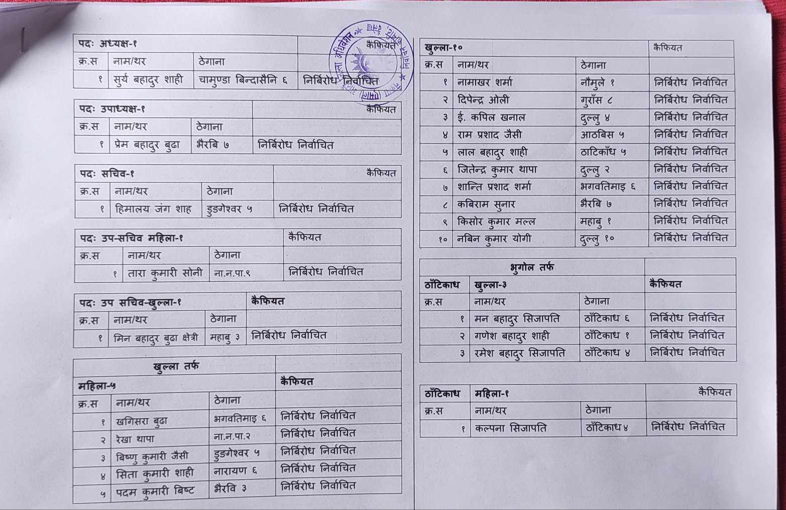 दैलेखकाे कमिटीकाे सचिवमा हिमालयजंग शाह, उप–सचिवमा तारा कुमारी सोनी र भीमबहादुर बुढाक्षेत्री सर्वसम्मत चयन भएका छन् ।