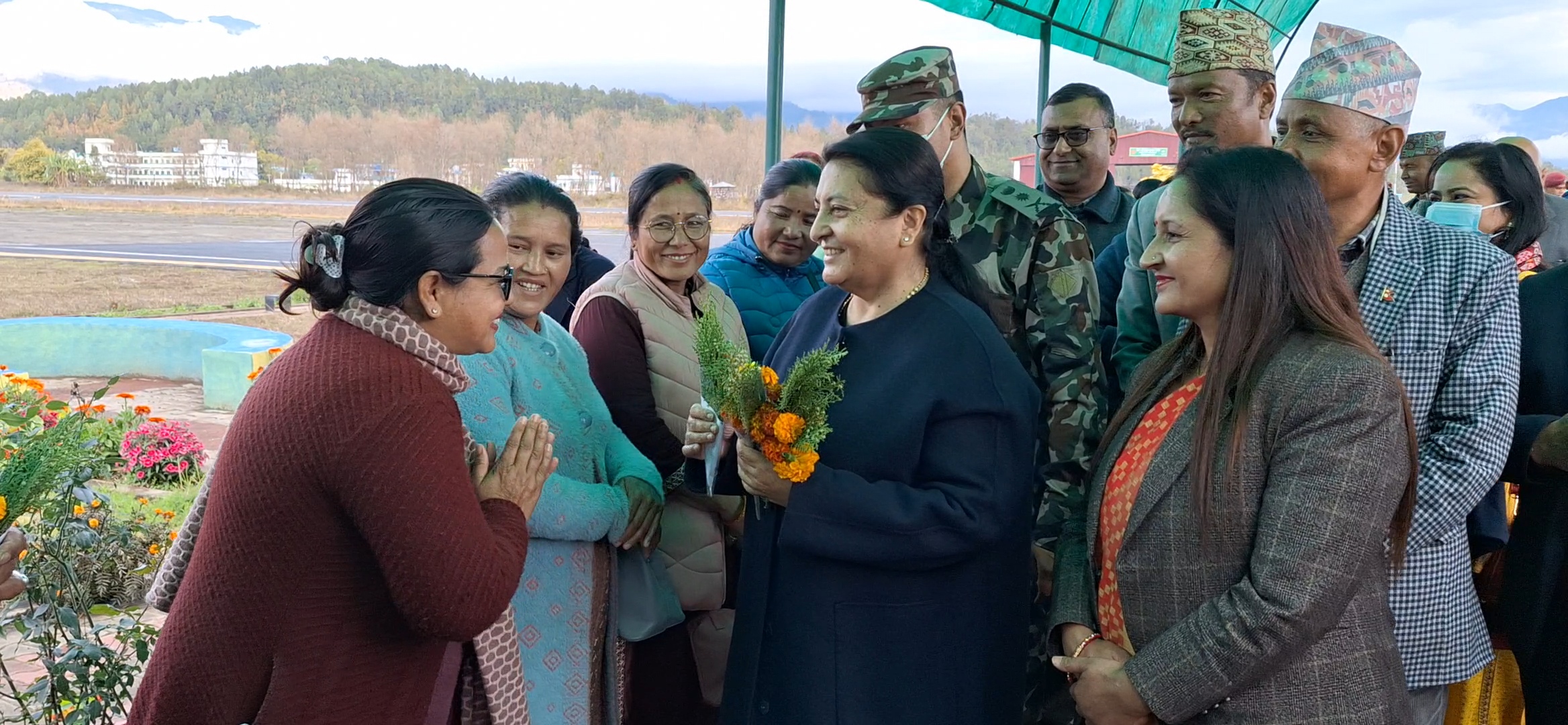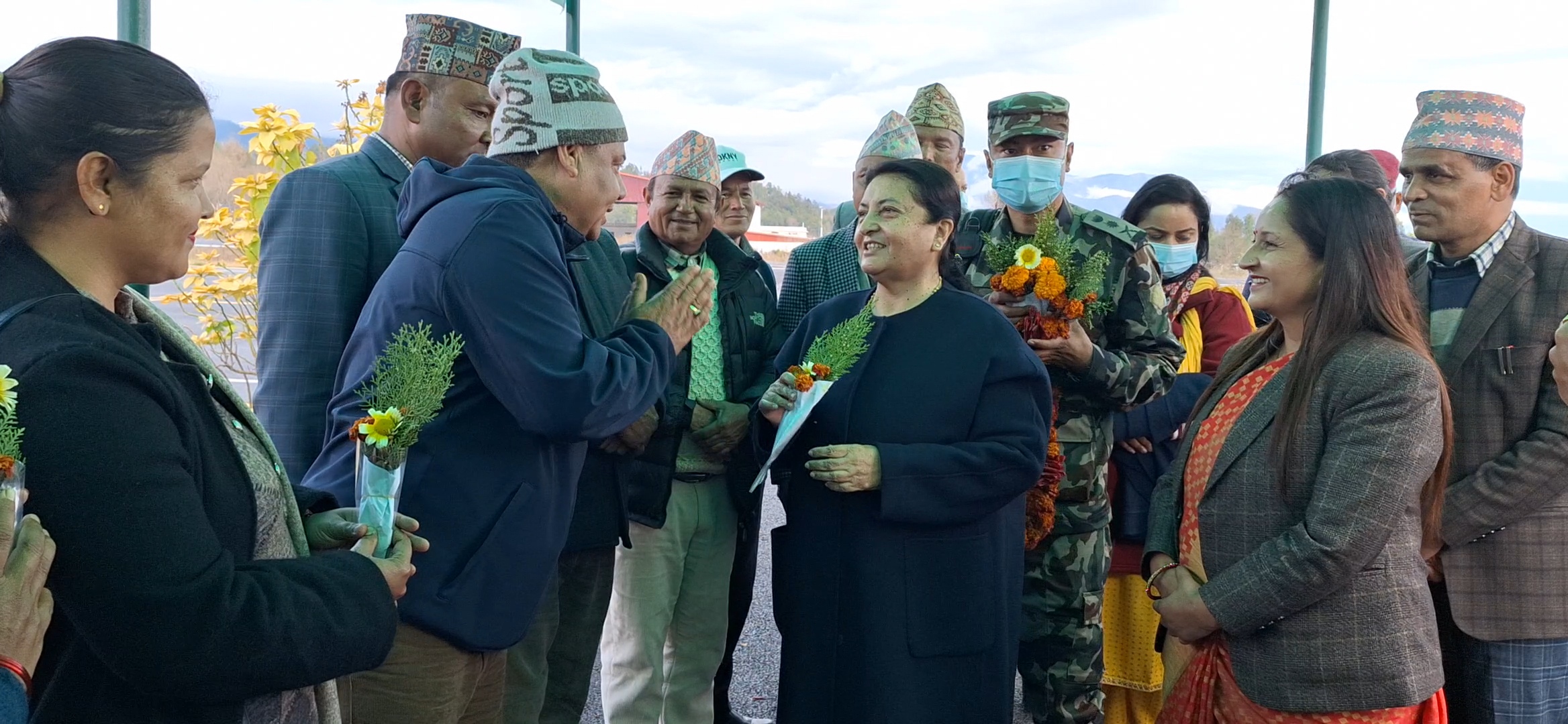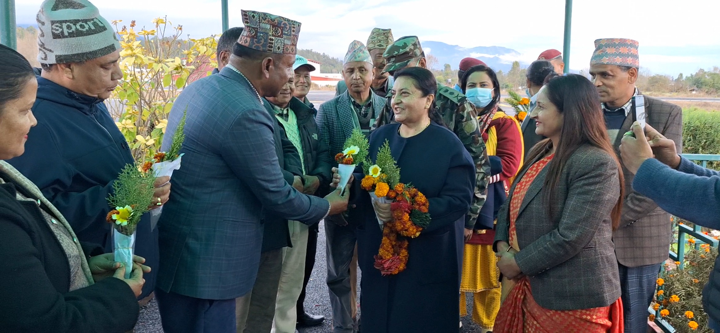 भण्डारीले सुर्खेत विमानस्थलमा वीरेन्द्रनगर नगरपालिकाका प्रमुख मोहनमाया ढकाल, उपप्रमुख निलकण्ठ खनाल, प्रमुख प्रशासकीय अधिकृत गेहेन्द्रप्रसाद डाँगी, प्रमुख जिल्ला अधिकारी, सुरक्षा निकायका प्रमुख तथा एमालेका प्रदेश अध्यक्ष गुलावजंग शाहसहितको टोली स्वागत गरेको छ ।