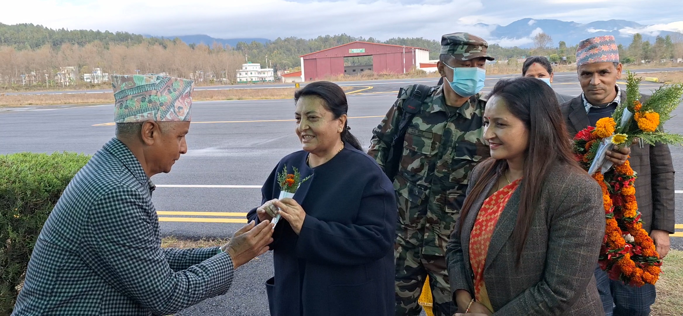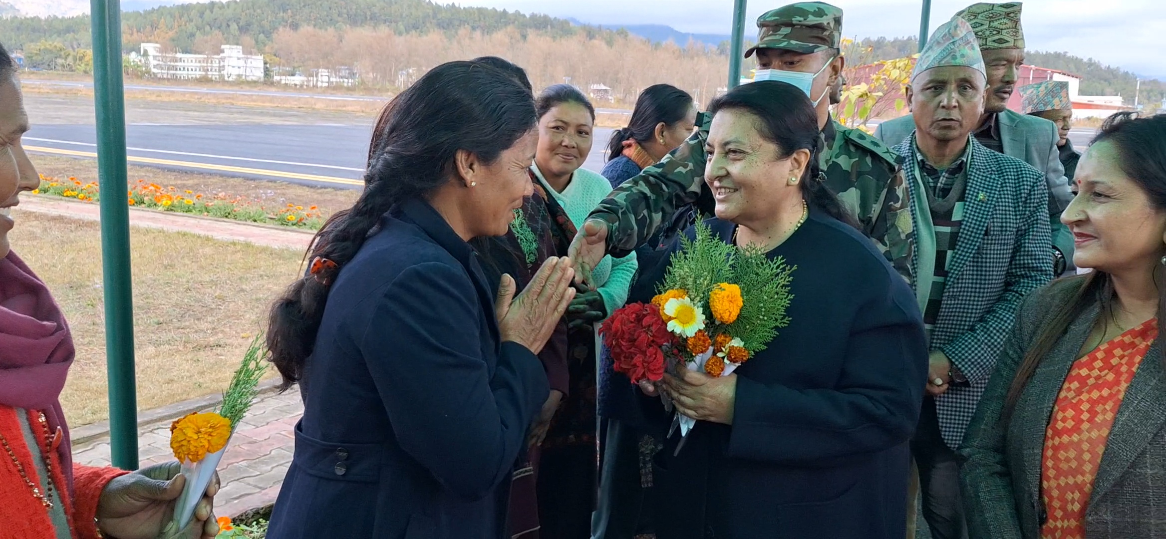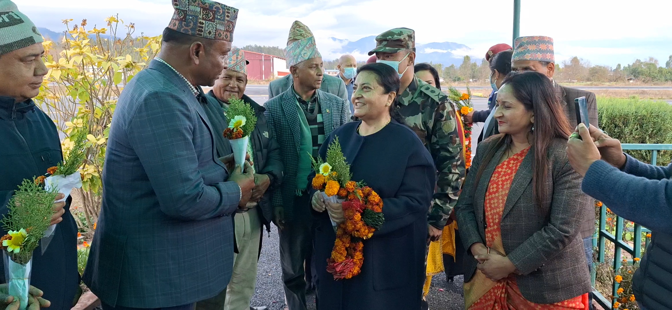 भण्डारीले सुर्खेत विमानस्थलमा वीरेन्द्रनगर नगरपालिकाका प्रमुख मोहनमाया ढकाल, उपप्रमुख निलकण्ठ खनाल, प्रमुख प्रशासकीय अधिकृत गेहेन्द्रप्रसाद डाँगी, प्रमुख जिल्ला अधिकारी, सुरक्षा निकायका प्रमुख तथा एमालेका प्रदेश अध्यक्ष गुलावजंग शाहसहितको टोली स्वागत गरेको छ ।