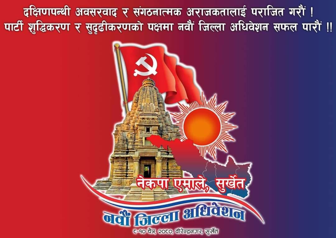 अधिवेशनका लागि ‘दक्षिणपन्थी अवसरवा र संगठनात्मक अराजकतालाई पराजित गरौं, पार्टी शुद्धिकरण र सुदृढीकरणको पक्षमा नवौं जिल्ला अधिवेशन सफल पारौं’ भन्ने मुल नारा तय पारिएको छ।