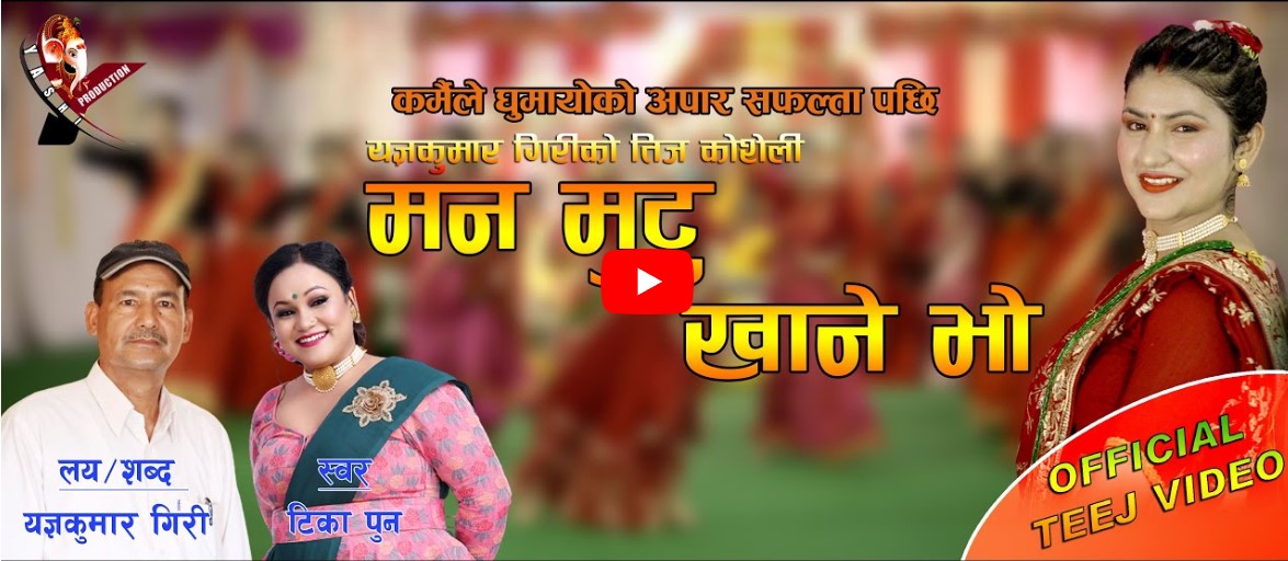 गिरीको तिज काेशेली मनमुटु खाने भो सार्वजनिक (भिडियाे) गायक गणेश वलीले स्वर दिएको तीज गीत ‘बाबू को माया’ सार्वजनिक मदन पुरस्कार : उत्कृष्ट पाँच पुस्तकको सूची सार्वजनिक Posts pagination Previous 1 … 5 6 7 … 10 Next