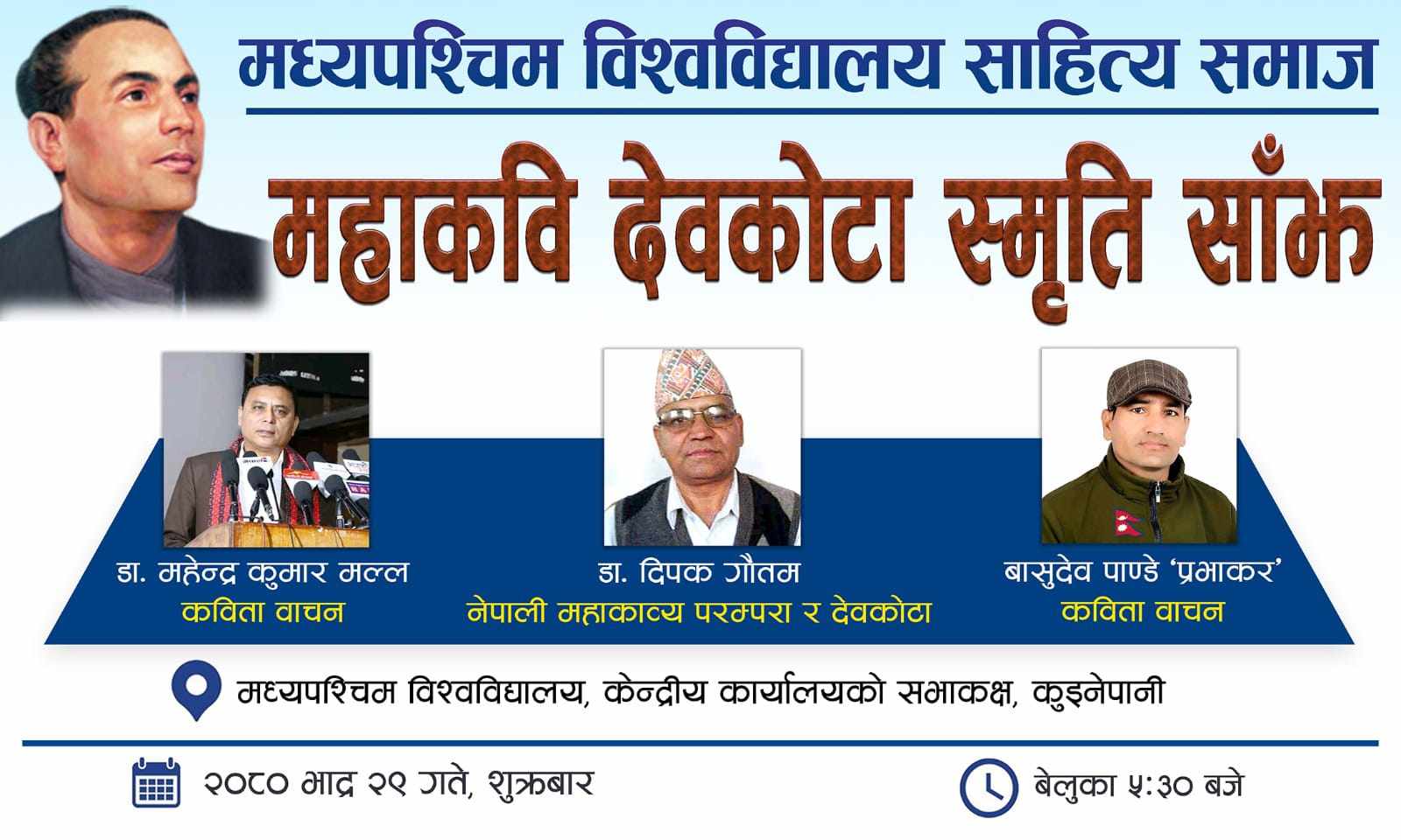 एमयु साहित्य समाजले देवकोटा स्मृति साँझको आयोजना गर्दै पञ्चपुरीमा तीज गीत प्रतियोगिता हुने ‘मायावी’मा पल शाह अनुबन्धित लोक तथा दोहोरी प्रतिष्ठान दैलेखद्वारा श्रष्टा सम्मान उदयको ‘दुई कदम’का २ पोस्टर सुर्खेती सर्जक गिरीकाे यस्ताे छ, ‘बैँसालु उमेर नाच्दिन्छु घुमेर’ गिरीको तिज काेशेली मनमुटु खाने भो सार्वजनिक (भिडियाे) गायक गणेश वलीले स्वर दिएको तीज गीत ‘बाबू को माया’ सार्वजनिक मदन पुरस्कार : उत्कृष्ट पाँच पुस्तकको सूची सार्वजनिक Posts pagination Previous 1 … 5 6 7 … 10 Next
