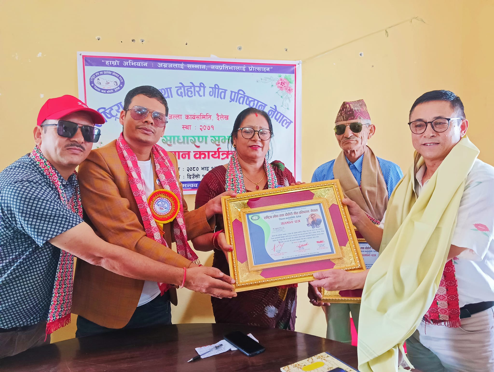 लोक तथा दोहोरी प्रतिष्ठान दैलेखद्वारा श्रष्टा सम्मान उदयको ‘दुई कदम’का २ पोस्टर सुर्खेती सर्जक गिरीकाे यस्ताे छ, ‘बैँसालु उमेर नाच्दिन्छु घुमेर’ गिरीको तिज काेशेली मनमुटु खाने भो सार्वजनिक (भिडियाे) गायक गणेश वलीले स्वर दिएको तीज गीत ‘बाबू को माया’ सार्वजनिक मदन पुरस्कार : उत्कृष्ट पाँच पुस्तकको सूची सार्वजनिक Posts pagination Previous 1 … 5 6 7 … 10 Next